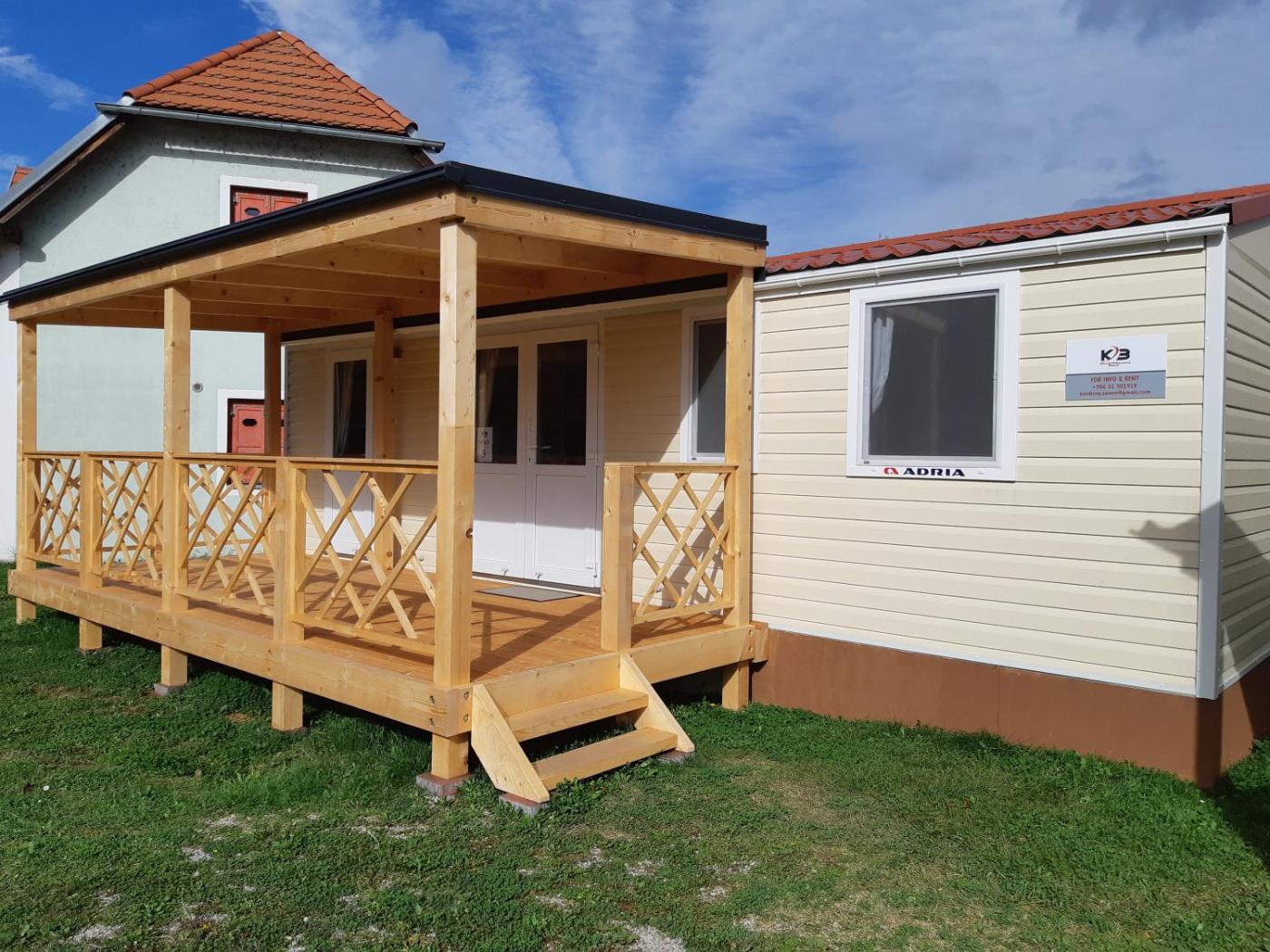 Mobile Home. Featuring a private entrance, this air-conditioned mobile home is comprised of 1 living room, 2 separate bedrooms and 1 bathroom with a shower. Guests can make meals in the kitchen that comes with a stovetop, a refrigerator, kitchenware and a microwave. The mobile home offers a tea and coffee maker, a seating area, a dining area as well as a terrace with garden views. The unit offers 5 beds. ;