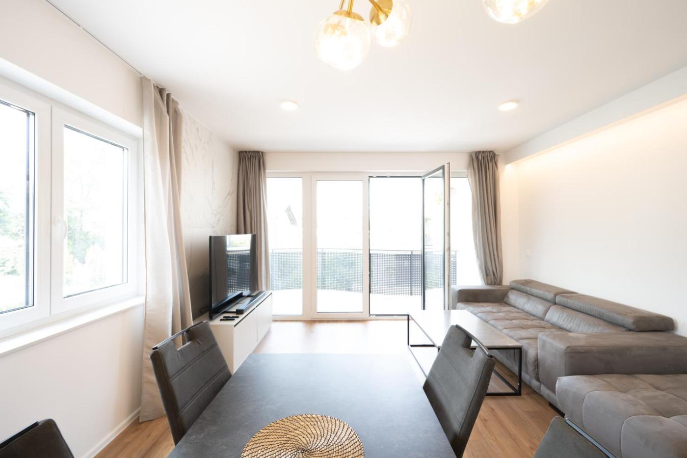 The apartment provides guests with a terrace, garden views, a seating area, a flat-screen TV, a fully equipped kitchen with a dishwasher and an oven, and a private bathroom with walk-in shower and a hair dryer. A fridge, a stovetop and kitchenware are also provided, as well as a coffee machine. At the apartment complex, every unit includes bed linen and towels.