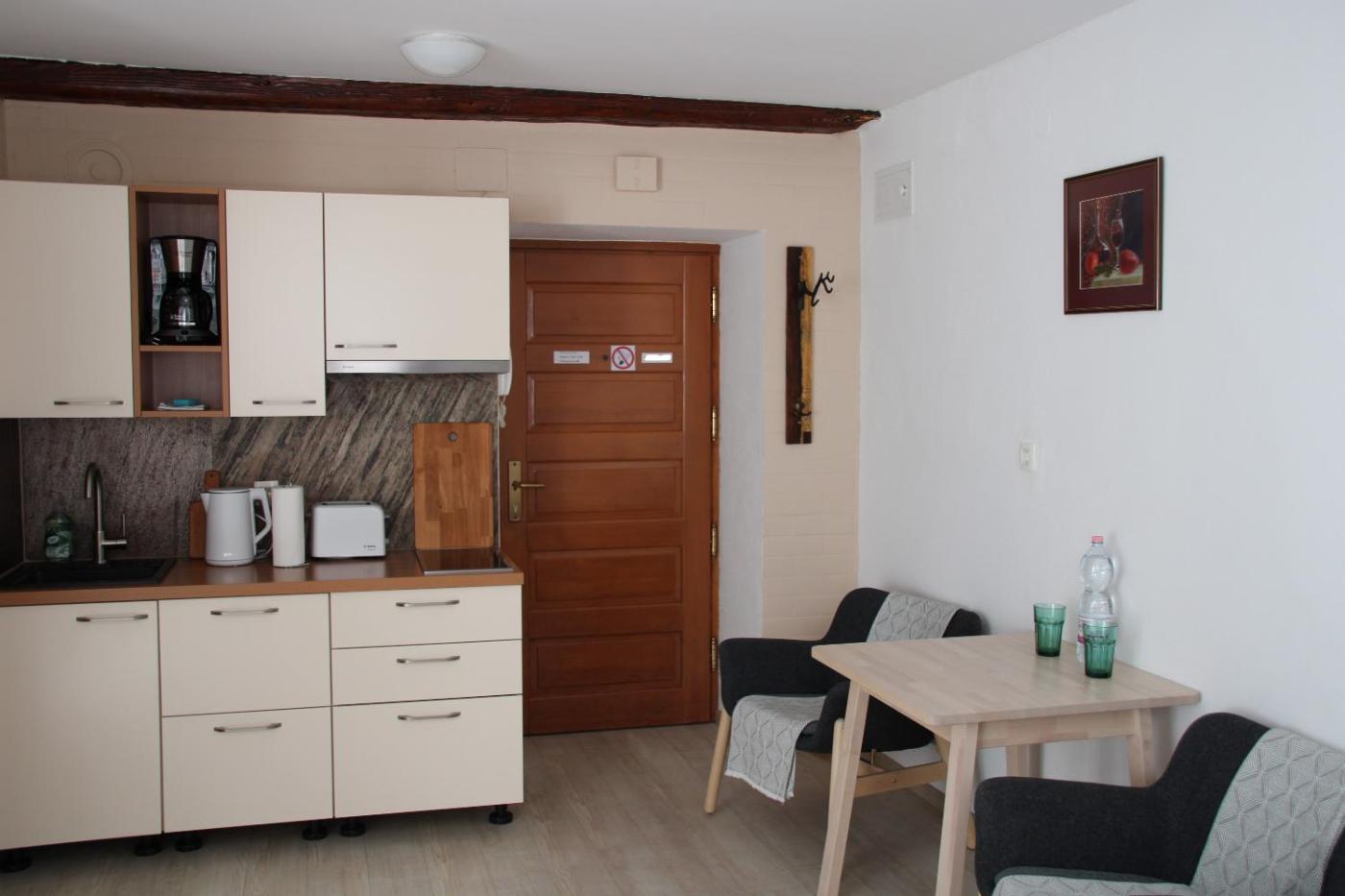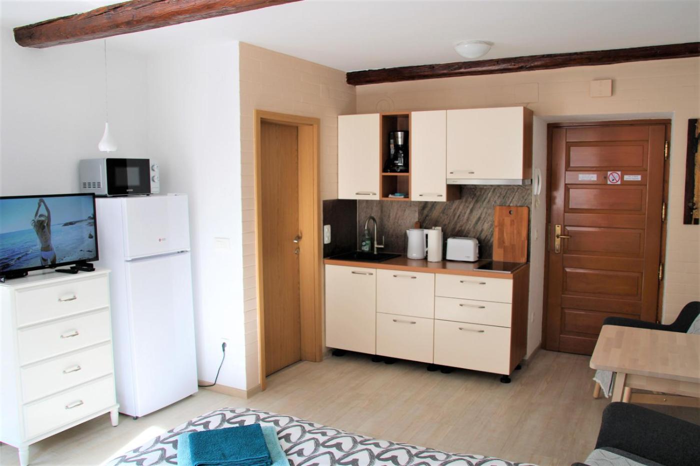 One-Bedroom Apartment. The apartment features 1 bedroom and 1 bathroom with a shower and free toiletries. Meals can be prepared in the well-fitted kitchen, which is equipped with a stovetop, a refrigerator, kitchenware and a microwave. The apartment provides a flat-screen TV, a washing machine, a tea and coffee maker, a seating area as well as a quiet street view. The unit offers 1 bed.